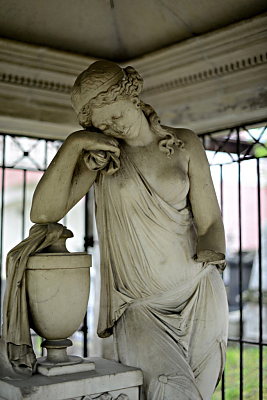 Из них наибольшее внимание привлекают работы скульптора Г. Т. Замараева – «Грация», склонившаяся над урной на могиле И. И. Козлова (1758-1823 гг.), серый обелиск на могиле Л. Д. Давыдова, скульптурная композиция с бюстом покойного и с тоской смотрящая на него женщина на могиле В. А. Небольсина (1744-1803 гг.). Также хорошо выполнена небольшая плакальщица над урной на могиле статской советницы М. И. Нарышкиной. Заслуживает внимания и крылатый гений работы скульптора И. П. Мартоса на могиле А. П. Кожуховой, урожденной княгини Трубецкой, расположенный на дорожке, ведущей к восточной стене монастыря. Немного далее расположен саркофаг С. П. Тутоллиной, работы И. П. Витали, сделанный в 30-х годах XIX века. По углам и на крышке саркофага установлены ангелы. Внимания заслуживает семейная часовня-усыпальница И. И. Левченко построенная в 1915 году, блистательным архитектором Р. И. Клейном.