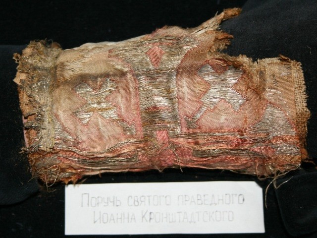 В Свято-Георгиевском монастыре находится часть от священнического облачения, в котором служил Святой Праведный Иоанн Кронштадтский, – поручь. Сначала это облачение находилось у архимандрита Серафима (Тяпочкина), затем переходило к разным людям. В доме последних хранителей случился пожар, и от облачения остался только поручь, который и был передан в монастырь.