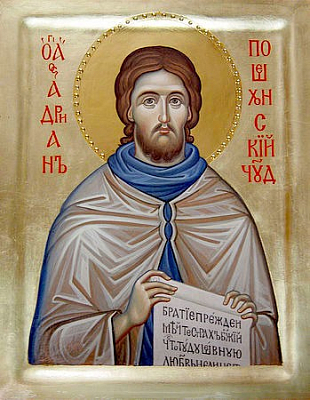 Ра́дуйся, Адріа́не преподобному́чениче и чудотво́рче преди́вный.
