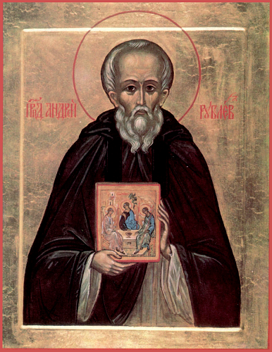 О предивный иконописче преподобне отче Андрее! Услыши моления нас, грешных, с верою, надеждою и любовию взывающих тебе, и буди предстателем нашим пред Святою Троицею. Творивый благодатно в храмех Божиих, помози и нам созидати храмы во славу Божию. Постигнув тайны красоты истинныя, озари нас познанием красоты богослужения нетленныя. Исцеляяй души взиранием на иконы твоя, даруй нам и мощей твоих цельбу. Послуживый единению верных, исходатай и нам единым сердцем и едины устны восхвалити утишающаго розни мира сего в Троице славимаго Бога, Отца и Сына и Святаго Духа во веки веков. Аминь.