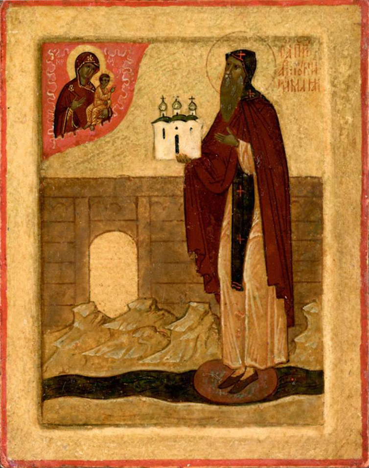 Гонение со стороны латинян на православных принудило братию разойтись. Преподобный Антоний скитался, переходя с места на место, пока не нашел на пустынном берегу моря большой камень, на котором целый год прожил в посте и молитве. Страшная буря, разыгравшаяся 5 сентября 1105 года, сорвала камень, на котором находился преподобный Антоний, и понесла его в море. Под праздник Рождества Пресвятой Богородицы камень остановился в 3 верстах от Hовгоpода на берегу реки Волхов при селе Волховском. Событие это засвидетельствовано в новгородских летописях. На этом месте преподобный с благословения Новгородского святителя Hикиты Затворника († 1109, память 14 мая), основал монастырь в честь Рождества Пресвятой Богородицы.