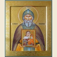 Трисиятельнаго Божества сиянием просветив сердце твое, преподобне,/ световиден весь явился еси добродетельми,/ яко и Гору Афонскую свет трудолюбия твоего озари,/ идеже святую икону Солнца истиннаго,/ Христа, и Его Пречистыя Матере в дар приим,/ на остров Нева езера пришед,/ обитель устроил еси, всеблаженне./ Тем, верою и любовию к тебе притекающе, радостно вопием:/ радуйся, пресветлый светильниче, Арсение, отче наш.