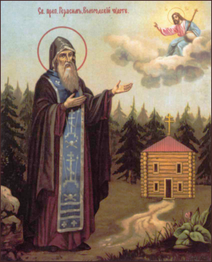 Преподобный Герасим был одним из первых подвижников Вологодского края; но сам он не был вологодским уроженцем.
