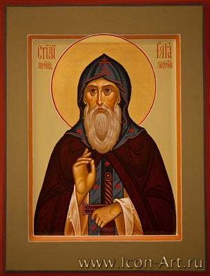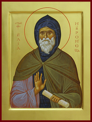Стены обители святыя укрыша тя, преподобне отче Илие, идеже в затворе печерстем слезьми непрестанными и моленьми всенощными, за грехи своя и кровь людскую, вольне и невольне пролитую, умилостивлял еси Бога, Той же, видя смирение и сокрушение твое, вскоре благодать пребольшую ти подаде, яко дивитися братии всей, зовущей: