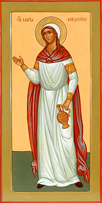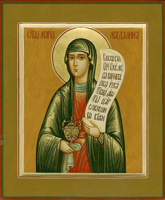 Святая равноапостольная Мария Магдалина, одна из жен-мироносиц, удостоилась первой из людей увидеть Воскресшего Господа Иисуса Христа. Родилась она в местечке Магдалы в Галилее. Жители Галилеи отличались непосредственностью, пылкостью нрава и самоотверженностью. Эти качества были присущи и святой Марии Магдалине. С юности она страдала тяжким недугом – беснованием (Лк.8:2). Перед Пришествием в мир Христа Спасителя бесноватых было особенно много: враг рода человеческого, предвидя свое близкое посрамление, восставал на людей со свирепой силой. Через болезнь Марии Магдалины явилась слава Божия, сама же она обрела великую добродетель всецелого упования на волю Божию и ничем неколеблемую преданность Господу Иисусу Христу. Когда Господь изгнал из нее семь бесов, она, оставив все, последовала за Ним.