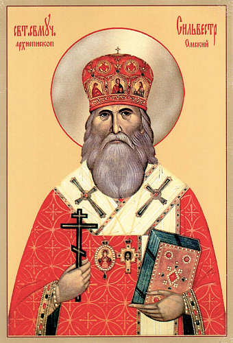 Радуйся, исповедниче новый и преславный; радуйся, кораблю веры непотопляемый. Радуйся, пред Богом за нас молитвенниче теплейший; радуйся, в скорбех грядущих на нас помощниче вернейший. Радуйся, во бранех со диаволом, терпению нас научаяй; радуйся, в стоянии за веру отеческую нас укрепляяй. Радуйся, богомудрых умов услаждение; радуйся, боголюбивых душ увеселение. Радуйся, священномучениче Сильвестре, земли Омския молитвенниче.