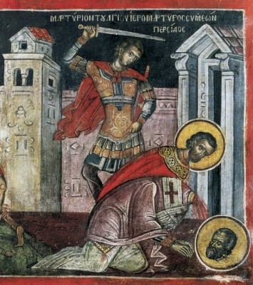 Священномученик Симеон, епископ Персидский, пострадал во время гонения на христиан от персидского царя Сапора II (310-381). Он был епископом города Селевкии-Ктезифона. Святителя оклеветали в связях с греческим государством и враждебных действиях против персидского царя.