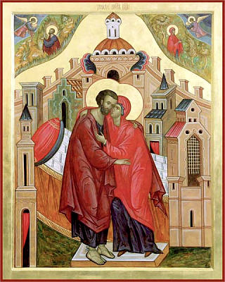 Ра́дуйтеся, я́ко во смире́нии ва́шем и ско́рби помяну́ вы Госпо́дь; ра́дуйтеся, я́ко сподо́бистеся прароди́телие Сы́ну Бо́жию быти.