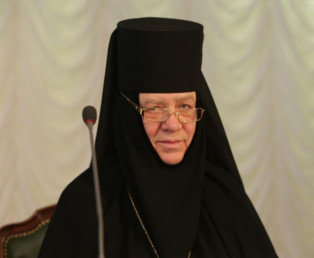 Далее владыка Амвросий пригласил выступить с докладом игумению Сергию (Конкову), настоятельницу Свято-Троицкого Серафимо-Дивеевского женского монастыря.