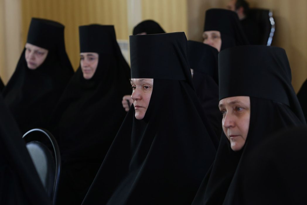 Келейное правило монаха называют иногда «частной Литургией». Келейная молитва непременно соединяется с богослужебным кругом и в особенности с таинством таинств – Евхаристией. Келейная молитва действительно поддерживает литургическую жизнь, и это двуединство становится опорой монашеского делания. От игумена, игумении зависит организация жизни монастыря как единого молитвенного пространства: они осуществляют духовное руководство братией, сестричеством, подают личный пример при постоянном обращении к святоотеческому и подвижническому опыту, проявляют мудрость в индивидуальном подходе к каждому брату, сестре с учетом духовного возраста и душевного устроения. От насельников же требуется готовность к послушанию, отказу от индивидуалистического понимания личного молитвенного делания. В продолжение доклада матушка остановилась на некоторых необходимых требованиях к иноческому правилу, особенностях, которые нужно учитывать при его назначении, а также на важности совершения Иисусовой молитвы.