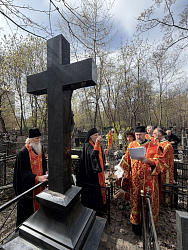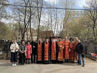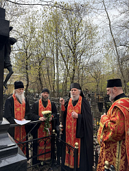 По сложившейся доброй традиции, после Литургии духовенство и братия отправились на Ваганьковское кладбище к месту захоронения валаамских монахов. Именно здесь находится братская могила иноков, несших послушание на подворье в дореволюционный период. У исторической могилы была отслужена торжественная панихида пасхальным чином. Вместе с братией за богослужением молились прихожане храма, пришедшие отдать дань памяти и любви тем, кто созидал духовную жизнь подворья более века назад.