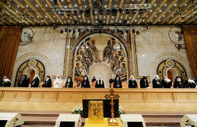 Ваши Святейшества и Блаженства, дорогие Предстоятели Поместных Православных Церквей! Ваши Высокопреосвященства и Преосвященства, досточтимые члены Архиерейского Собора Русской Православной Церкви! Ваши Высокопреподобия и Преподобия, представители духовенства города Москвы! Дорогие отцы, братья и сестры!