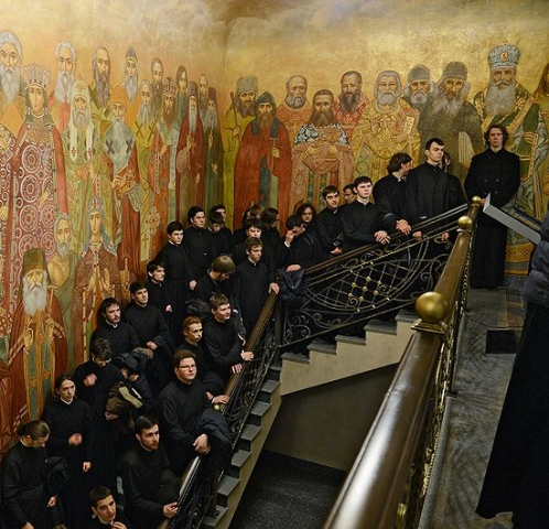 Фреска в Сретенской семинарии. Фото: С. Власов / Patriarchia.ruНа фреске в Сретенской семинарии, где изображены не только все святые, в земле Российской просиявшие, но и еще не канонизированные подвижники, присутствует портрет Феодора Достоевского наряду с Николаем Гоголем. Вы неоднократно говорили о влиянии на Вас Феодора Михайловича, отмечая, что он является одним из самых христианских авторов в русской литературе. Как Вы оцениваете роль литературы, искусства в духовном развитии человека?
