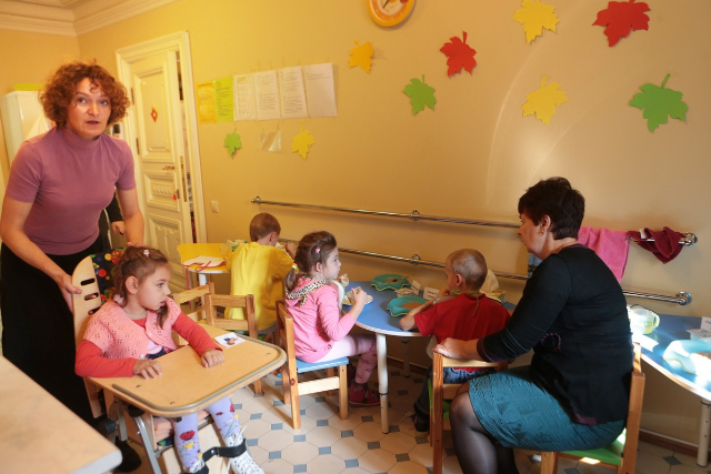 В наш садик мы берем только детей со средней или тяжелой степенью заболевания. Мы занимаемся только теми детьми, которые остро нуждаются в социальной адаптации. Когда ребенок начинает сам ходить, говорить, может, пусть и медленно, самостоятельно кушать и сам себя обслуживать, то это уже намного легче для мамы и такому ребенку достаточно домашней адаптации. Мы его выпускаем и на его место берем нового тяжелого малыша.