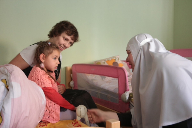 Второе – дети-инвалиды. Еще в 2010 году при нашей обители был создан детский медицинский реабилитационный центр для детей с детским церебральным параличом. Из этого проекта родилось уже несколько самостоятельных проектов, и теперь на базе медицинского центра, кроме реабилитации детей с ДЦП, действует паллиативная выездная служба, которая помогает семьям с неизлечимо больными детишками.