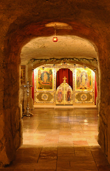 Да, в дни престольных праздников и еще в отдельные дни, по расписанию. Например, в Успенской церкви бывает ранняя литургия на праздник Успения Пресвятой Богородицы. Чин Погребения Плащаницы Божией Матери у нас совершается по особому: начинаем его в соборе, а после крестного хода спускаемся сюда и полагаем Плащаницу во внутреннюю пещерку - «погребаем Матерь Божию в Гефсиманийской веси». До отдания Успения службы совершаются здесь, и паломникам доступ открыт <...>