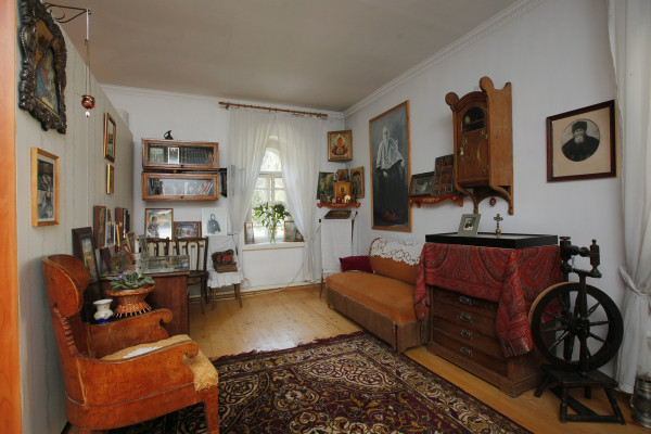Да все! Кусочек шали, в которую она куталась в морозы в далекой ссылке (в 200 верстах от Иркутска) и белый апостольник с капельками ее крови (у Матушки всегда были слабые легкие, а в Сибири туберкулез уже открылся, и в письмах к своим ближним она не раз писала, что хотела бы «вернуться к своим бережкам»). Дорог нам небольшой деревянный сундучок, с которым священномученик Серафим (Звездинский) был в ссылках. Сохранились матушкино кресло из карельской березы, небольшой ее комод и диванчик. И, конечно, с благоговением берем мы в руки книги с пометками матушки Фамари, которые она читала, придя совсем юной в монастырь святой равноапостольной Нины в Бодби. Настоятельница Бодбийского монастыря в Грузии игумения Ювеналия (Ловенецкая), впоследствии – настоятельница Богородице-Рождественского женского монастыря в Москве – приняла юную Тамару Александровну, рано осиротевшую, как мать, и подарила ей книги святителя Игнатия (Брянчанинова) с дарственной надписью. Она пожелала стремившейся к богообщению девушке полюбить этого автора так же, как полюбила его сама. Есть у нас и книги владыки Серафима (Звездинского), принадлежавшие еще его отцу, протоиерею Иоанну Звездинскому, являвшемуся благочинным всех московских единоверческих храмов, но одновременно – автором тропаря и службы преподобному Серафиму Саровскому. Это связано с исцелением его сына по молитвам к батюшке Серафиму…
