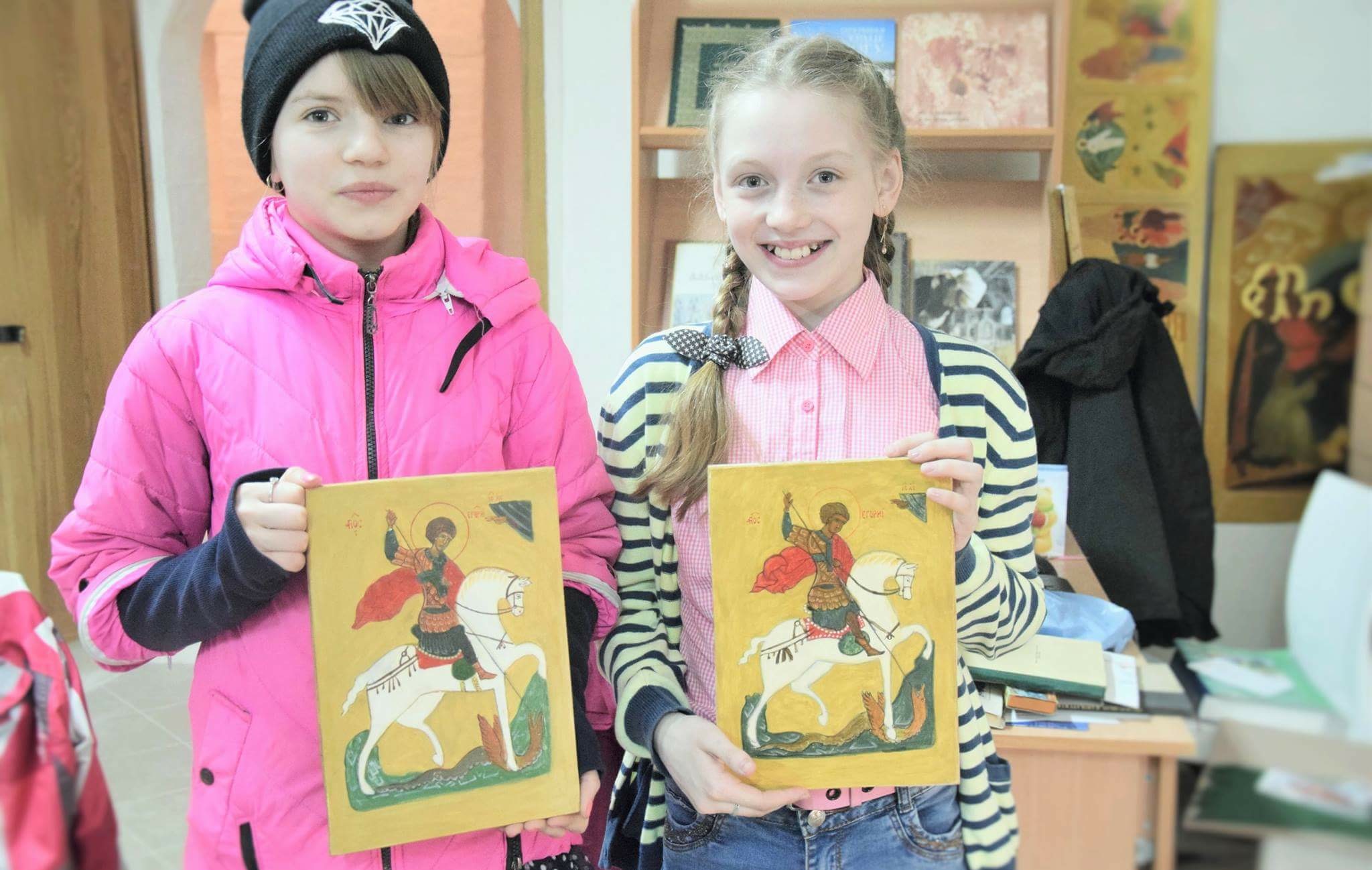 Да, конечно, мы говорим о том, кем был святой. Например, уточнили, что Георгий Победоносец – это реальный человек, а Егорий Храбрый – мультфильм, о котором они смотрели, фольклорный образ, чтобы у них не смешивались представления о святом Георгии с героем фильма. Приходилось пояснять, что в языческой древности было время, когда Церковь запрещали и священников сажали в тюрьмы, тогда и пострадал Георгий Победоносец. Ученики спрашивают: «А когда мы встретим святого Георгия в раю, он нас не отругает, что мы плохо или неправильно его нарисовали?» А я их успокаиваю: «Нормально вы нарисовали, и все святые добрые, они не ругаются».