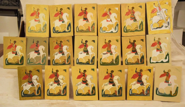 Стал разрабатывать конспекты, методические пособия по иконописанию на будущее, обходил мастерские разных курсов и объявлял товарищам, что планирую создать иконописный кружок у себя в городе, просил пожертвовать лишние ненужные образцы. Некоторые смеялись: «Всё он что-то собирает». А я складывал образцы и в коробках привозил в Тверь. Так, за много лет у меня накопился богатый изофонд, благодаря которому, можно было бы в Тверской области открыть Иконописную школу.