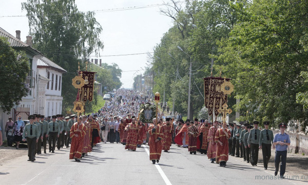 Мы вернулись к традиционной форме празднования, которая была у нас с 2003 года, когда отмечалось 125-летие явление иконы «Неупиваемая Чаша». Три года крестный ход шел по другому маршруту, но на 140-летие явления святыни, как и раньше, после совершения Литургии в Высоцком мужском монастыре (в котором было восстановлено почитание чудотворного образа) большой крестный ход вышел оттуда и прошел через весь город к нашему монастырю. У нас же, где этот образ был первоначально явлен, Литургия началась на час позже, в 10 утра. По ее завершении мы с сестрами, духовенством, прихожанами, паломниками крестным ходом отправились к Святым вратам и встретили крестный ход, прошедший по Серпухову более пяти километров. Потом на соборной площади нашей обители была отслужена завершающая часть молебна перед двумя чудотворными иконами «Неупиваемая Чаша» из двух монастырей. Когда праздник выпадает на выходной день, людей собирается больше. Хотя и в будни бывает много народа. Серпуховичи полюбили крестные ходы. А паломники из других мест специально приезжают в этот день, чтобы поклониться чудотворным образам Божией Матери. Праздник давно стал всероссийским. Также богомольцы прикладываются к гробнице преподобного Варлаама, память которого, как я говорила, в этот день совершается.