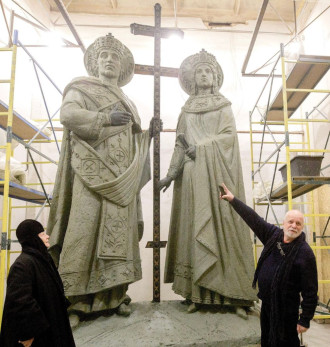 Само празднование юбилея, 11 июня, совпадает с воскресным Днем всех святых, что нас тоже очень вдохновляет. Второе символическое обстоятельство из этого ряда: юбилей будет отмечаться накануне Дня России и дня рождения Александра Невского, совпавшего с государственным праздником. Значит, предстоит три выходных дня, которые верующие люди смогут посвятить духовным событиям. У нас на праздничный день намечены три Божественные литургии: ночная – в нижнем храме Царственных страстотерпцев, ранняя – в храме святого праведного царя Иустиниана в 7 часов утра и поздняя – в 9 часов утра на выносном престоле под открытым небом. Пространство там не ограничено, ждем всех желающих! Потом мы пойдем крестным ходом к строящемуся Софийскому собору, и перед его входом возле копии Животворящего Креста будет совершен молебен. После молебна в парковой зоне состоится торжественное открытие и освящение памятника святым равноапостольным Константину и Елене (те, кто знает церковную историю, историю человечества, сразу поймут, почему он у нас здесь появится). А после того, как мы достроим собор, эта пятиметровая композиция будет украшать его южный фасад. Еще в планах праздничных мероприятий – фестиваль музыкальных коллективов. Он пройдет на площадке, где стоят Царственные страстотерпцы.