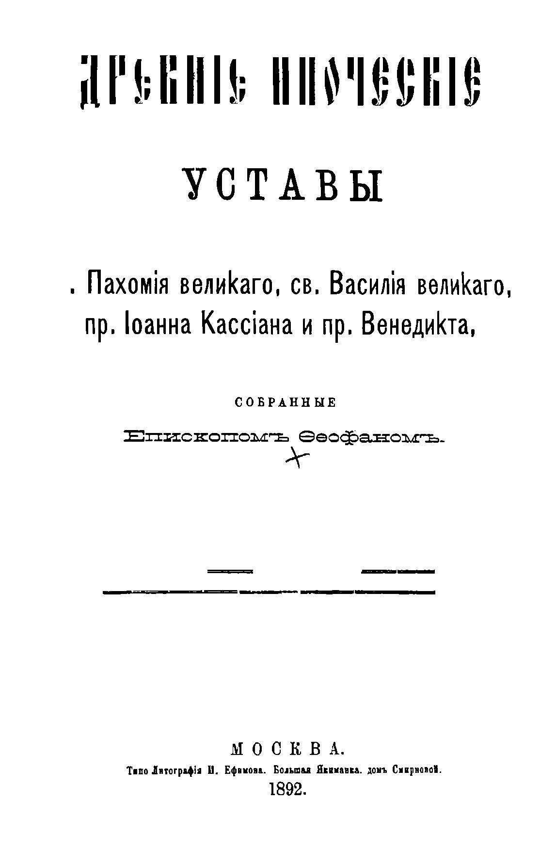 И еще я хотел бы обратить внимание потенциального читателя новой рубрики на разнообразие ее материалов. Вы можете ознакомиться с древними иноческими уставами преподобного Пахомия Великого, святителя Василия Великого, преподобного Иоанна Кассиана и преподобного Венедикта, собранные, как указано на титульном листе, епископом Феофаном (святителем Феофаном Затворником) и отпечатанные в Москве в 1892 году. Можете ознакомиться с двухтомником С.Зарина «Аскетизм по православно-христианскому учению», изданному в Санкт-Петербурге в 1907 году. Кого-то заинтересует не так давно отсканированное Санкт-Петербургской православной духовной академией капитальное исследование северной старины «Подвижники и монастыри крайнего севера» профессора К.Докучаева-Баскова, который в конце XIX века проделал поистине титанический труд. Словом, все самое интересное мы аккумулируем на одной информационной площадке.