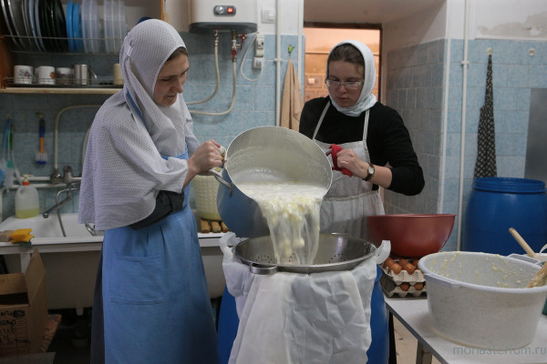 Когда я пришла в обитель, по возрасту была самой молодой, мне было 30 лет, поэтому выполняла все послушания. В кельях и на кухне было печное отопление. Пищу варили на огне. Это, конечно, очень вкусно, но ведь надо было принести два ведра торфа, поленья, залезть на печку, слить картошку – кастрюли по 40 литров. Это только потом провели паровое отопление, сделали баню...