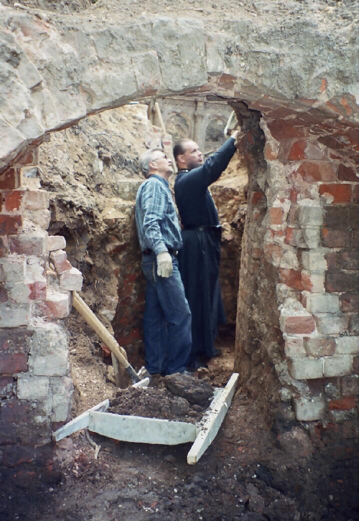 Еще раньше, в 2004 году, Церкви были переданы храм Христа Спасителя, монастырская колокольня и территория кладбища, где располагался пещерный скит. В одну из наших первых служб, проходившую в цокольной части храма (потому что в верхней части, еще не отреставрированной, мороз достигал 15 градусов), во время Херувимской песни, Евхаристического канона я вдруг услышал красивый колокольный звон. После проповеди спросил, слышал ли его еще кто-то? Оказывается, алтарники слышали, и человек двадцать прихожан подняли руки. Это при том, что колоколов у нас еще не было, а ближайшая колокольня находилась в пяти километрах, в селе Воскресенское, где в будни никто не звонил. Да и вообще нижняя часть храма – подвальная – никакие внешние звуки не проходят. Даже если бы рядом машина проехала, ее бы не было слышно… Конечно, мы отнеслись к этому как к чуду Божию, явленному для укрепления нас в вере и в усердии по восстановлению обители. Приезжавший к нам позже отец Илий (Ноздрин) выслушал рассказ о необычном «колокольном звоне» и поддержал нас в нашем толковании события.