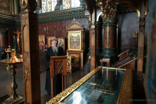 Чтение святоотеческой литературы в монастыре должно быть ежедневным. Как апостол Павел пишет в первом послании к Коринфянам: «И слово мое и проповедь моя не в убедительных словах человеческой мудрости, но в явлении духа и силы, чтобы вера ваша утверждалась не на мудрости человеческой, но на силе Божией. Мудрость же мы проповедуем между совершенными, но мудрость не века сего и не властей века сего преходящих, но проповедуем премудрость Божию, тайную, сокровенную...» (1 Кор. 2:4−7). Тогда только тайны богопознания открываются, когда человек глубоко погружается в писания святых отцов. Следует также сказать, что в наше время переписывание рукописей искусственно не возродить. Но, по совету старцев, я всем советую заниматься заучиванием Евангелия и поучений святых отцов. Вообще считается, что монашествующим обязательно надо знать наизусть пятую, шестую и седьмую главу Евангелия от апостола Матфея, где даны все заповеди Христа, знать близко к тексту «Душеполезные поучения аввы Дорофея», где можно найти ответ на любой вопрос. Господь сказал в Святом Евангелии: «Аще кто любит Мя, слово Мое соблюдет» (Ин. 14:23), и «Не любяй Мя словес Моих не соблюдает» (Ин. 14:24), и «Аще заповеди Моя соблюдете, пребудете в любви Моей» (Ин. 15:10). Для чего нам исполнять заповеди, – чтобы быть добренькими, хорошими? Надо четко осознавать, что исполнение заповедей Христовых – это не просто какая-то общая нравственная добродетель. Ими Господь открыл вход в Царствие Небесное еще здесь на земле. Спаситель говорил: «Аз есмь путь и истина и живот...» (Ин.14:6). Живот – по-русски значит жизнь. И вот этот путь к истине и к жизни в благодати, которая поселяется в нас, – то есть самую глубокую тайну в Евангелии – открывают нам святые отцы. Без чтения их творений мы будем ходить словно с повязкой на глазах, не зная, куда направиться. Даже если кто-то усердно молится и делает добрые дела, ум его останется без плода.