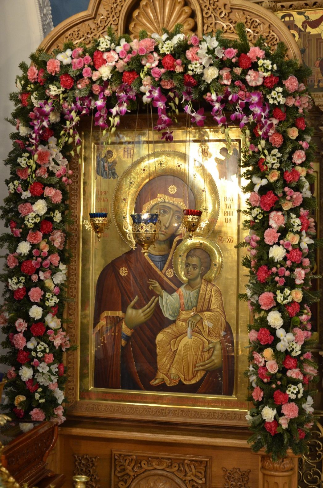 Любовь к Пресвятой Богородице почти повсеместно проявляется и в желании украшать Ее иконописный образ в праздничные дни живыми цветами, даже зимой. У вас в монастыре эта любовь проявляется в полной мере.