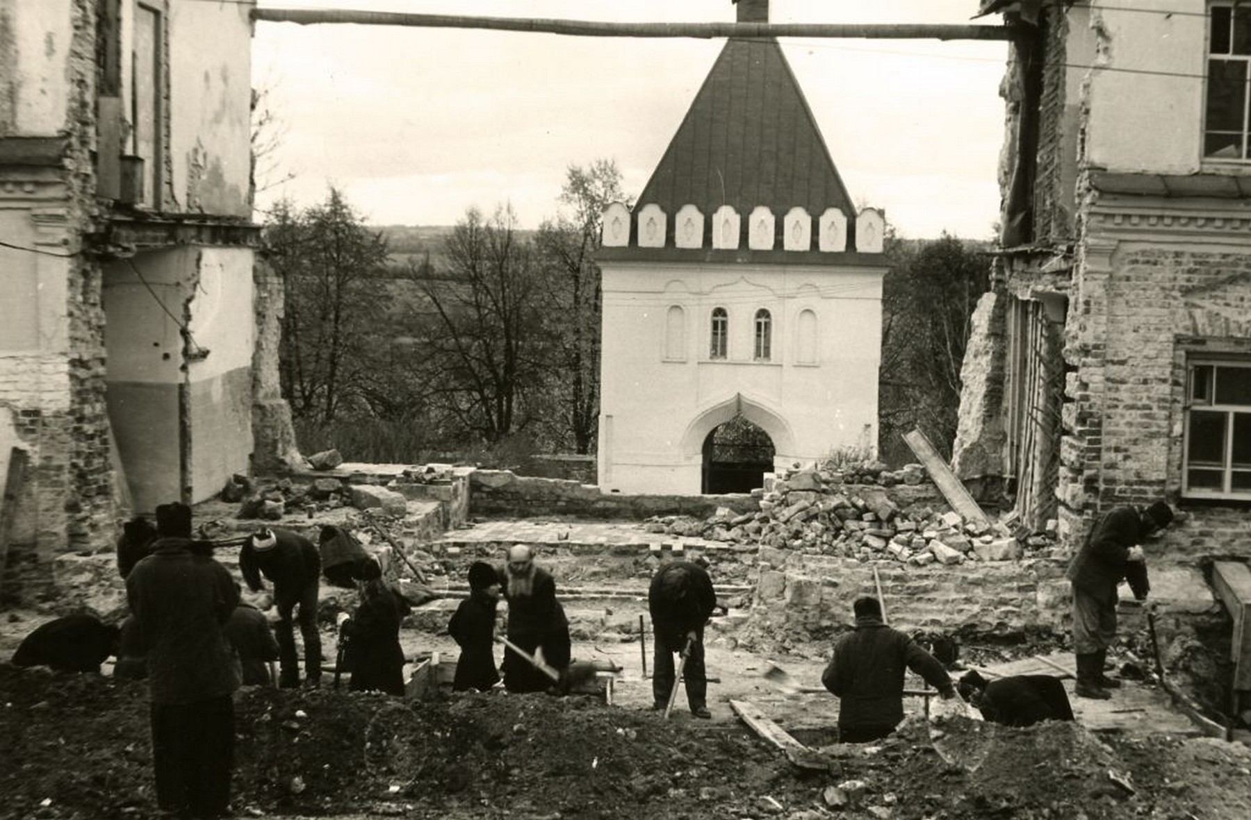 Здесь тоже своя предистория с интересными поворотами. В очередной мой приезд в Данилов монастырь наместник сказал: «В феврале в Оптину Пустынь прибудет наместник, готовь храм». По возвращении я сразу пошел к директору Козельского сельскохозяйственного училища и сообщил, что мне поступило указание готовить храм к службам. На что он резко ответил: «Никакого храма я тебе не отдам! Нам самим помещения нужны». Тогда я направился в Козельск, в исполком, председателем которого была женщина. Выслушав мои пояснения и вопрос, как мне быть – отправлять рабочих обратно в Данилов монастырь или давать им фронт работ, она ответила, что сейчас, в сию минуту не готова ничего сказать. Приедет сама в Оптину, все посмотрит, вникнет в суть и после этого сделает выводы. Приехала и вошла с северной стороны во Введенский собор. Только она ступила на прогнивший деревянный пол, как доска под ней провалилась. Расстояние между полом и землей было небольшое, так что, к счастью, председатель не упала. Но с ходу смогла оценить ситуацию. Сказала директору училища: «И вы собираетесь здесь делать учебные классы? Даю вам неделю срока, освобождайте помещение, пусть устраивают храм». А там стояли токарные станки. Я в воскресенье уезжал на службу в Данилов монастырь и попросил прораба, который тоже был из Данилова, договориться с руководством одной воинской части, чтобы солдаты тягачом убрали станки из храма. Вернулся в понедельник, пришел в ужас. Станки лежат на земле, ручки у них отбиты. Директор училища стал угрожать мне судом. Но, во-первых, он предписание председателя исполкома убрать все из помещения в недельный срок не выполнил. Во-вторых, меня самого в этот день в Оптиной не было. В общем обошлось.