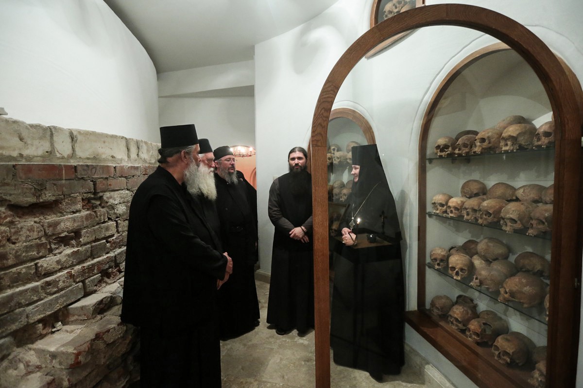 Да, снова повторим это имя: заведующий отделом археологии Московской Руси РАН Леонид Андреевич Беляев возглавил археологические раскопки в нашей древней обители, и результаты исследований оказались чрезвычайно богатыми. Найдены были остатки фундаментов соборов XVI–XVIII веков. Найдена также монастырская улица – несколько рядов сменявших друг друга зданий. Хотя сами здания не сохранились, но остались обшитые деревом погребки-подполья, в которых монашествующие хранили запасы продовольствия в кувшинах, кубышках, сосудах, горшках. Причем наборы керамической посуды великолепны! Также при раскопках мы вместе с археологами нашли нательные крестики самых разных периодов, четки, вериги, резные иконки, крест-реликварий, серии монет. Еще обнаружили в земле слезницы (елейницы) XIV –XVIII веков – сосуды, которые наполняли соборным маслом и клали при погребении в гроб. Обо всех находках не расскажешь, но особого разговора заслуживают захоронения, обретенные среди останков фундаментов соборных храмов. Согласно традиции, которая существует на Святой Горе Афон, по цвету костных останков и глав иноки определяют степень добродетельности и святости усопшего. Если глава и косточки желтоватого цвета, значит, монах был подвижником. Так вот у нас, исходя из этого определения, подвизалось много праведниц и святых. Много было косточек «золотенького», как заметила одна из монахинь, цвета. Я даже представить себе не могла, что косточки усопших могут иметь такой цвет! У насельниц обители появилось желание особо почтить память своих предшественниц, чтобы приходящие сюда могли их поминать. Имена всех подвижниц, трудами которых стояла, стоит и, Бог даст, будет стоять обитель, неизвестны, поэтому по благословению двух Патриархов – блаженно почившего Святейшего Патриарха Московского и всея Руси Алексия II и ныне здравствующего Святейшего Патриарха Московского и всея Руси Кирилла – мы устроили в подземной части монастырского собора придел в честь Всех преподобных отцев и жен, в подвиге молитвы просиявших. И в нем сделали костницу, как на Афоне и Синае. Заходишь сюда и не ощущаешь ни малейшего страха, который, казалось бы, мог охватить душу при виде множества останков. Напротив, здесь хочется оставаться подольше, что говорит о присутствии на этом святом месте Божественной благодати... В маленьком храме-крипте служатся литии, панихиды, сестры приходят сюда помолиться. А в определенные дни, например, на ранних воскресных литургиях и на престольный праздник обители, здесь могут помолиться паломники.