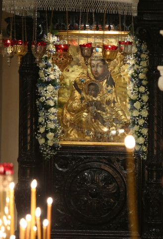 Связана, и наитеснейшим образом. Хочется отметить, что многие важные события происходят у нас в дни праздников в честь иконы Божией Матери «Милостивая» – мы даже не планируем этого, но так получается. Вот и в 2011 году 25 ноября, в день празднования чудотворного монастырского образа Царицы Небесной, милостью Божией наш монастырь был приглашен для совершения молебна с акафистом перед Честным Поясом в Храме Христа Спасителя. А перед принесением в Россию великой святыни православного мира сестры Зачатьевской обители с благоговением вышили золотом по красному бархату пояс, желая принести его для освящения к ковчегу с Богородичным Святым Поясом. Конечно, мы понимали, что людей будет великое множество – тысячи и тысячи человек, – поэтому не знали, получится ли у нас. И огромной была наша радость, когда игумен Ватопедского монастыря архимандрит Ефрем не только благословил приложить пояс к ковчегу, но еще предложил взять его на Афон, чтобы он там в течение длительного времени находился в алтаре соборного храма в соприкосновении с монастырскими святынями. Затем через день, 27 ноября, в нашей обители Божественную литургию (и чин освящения памятника святителю Алексию, митрополиту Московскому) совершал Святейший Патриарх Кирилл. По окончании Литургии Его Святейшество в своем слове отметил, что принесение в Россию святыни «вдруг дало возможность увидеть, может быть, самое сильное и великое, что сохраняется в жизни народа, – эту сильную, горячую, искреннюю веру людей»...