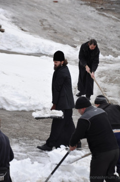Из афонских традиций можно вспомнить и ту, что у нас есть день, когда мы не принимаем паломников. Монастырские врата не открываются по понедельникам. Но, конечно, если к нам приходит человек, который нуждается в общении или помощи, мы ему не отказываем. Хотя уже многие знают, что есть день, когда монастырь не принимает паломников. Утреннее и вечернее богослужения совершаются своим чередом, но братия проводит понедельник с большим вниманием к своей внутренней жизни. Есть возможность пойти в библиотеку, почитать, помолиться у себя в келье или просто побезмолвствовать.