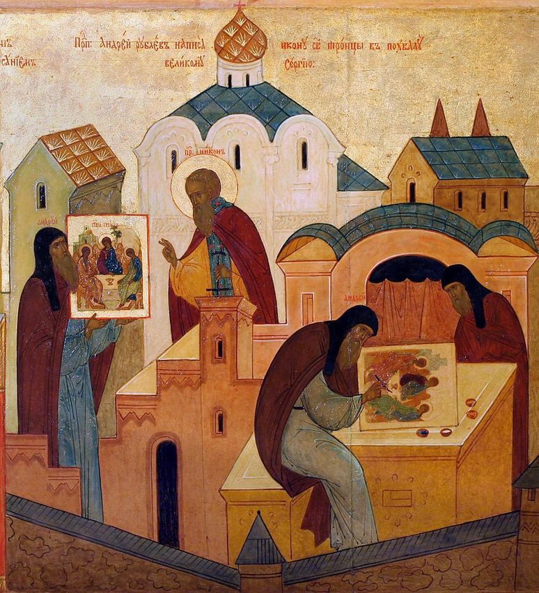 А еще мы знаем о том, что преподобный Никон заказал преподобному Андрею Рублеву икону Троицы в похвалу преподобному Сергию. Это была традиция духовной связи с преподобным Сергием, с его почитанием Троицы.