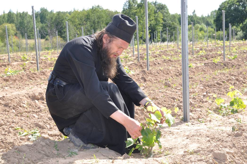 И вот на сегодня результат всех трудов: почти полтора гектара виноградных угодий, около 150 плодоносящих сортов, среди которых есть и выведенный в 2014 году «Селигер»; первый рекорд урожая – 4,5 тонны, первые опыты производства церковного вина, множество единомышленников, ставших за прошедшие годы друзьями монастыря. Но ведь помимо этого – еще немалое агрохозяйство с овощными и садовыми культурами, современными технологиями, техникой. И «битвы за урожай» – сражения с непростым климатом, почвами в зоне рискованного земледелия, и даже с селигерскими пернатыми, во множестве норовящими поживиться трудами монашеских рук (немалые площади посадок приходится накрывать сеткой). Кстати, этих рук в хозяйстве всегда не хватает; хоть братия и помогает по послушанию, и приезжают добровольные помощники, но львиная доля всех работ на земле – это все равно крест и ответственность иеромонаха Фаддея.
