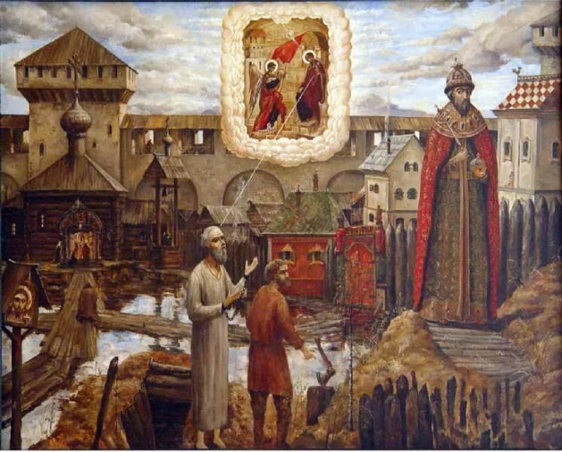 Эту православную выставку мы возили по стране с помощью священников, с ней нас просили приехать епископы в Новосибирск, Томск, Иркутск. Потом мы должны были поехать в Кемерово, но тут закончились деньги на эти переезды. Картины большие и их много – девать их было некуда. Выставку оставил в Угличе тогдашний директор музея Виктор Иванович Ерохин. Мы с ним тогда подружились, потом я его окрестил, когда уже стал священником. И он спас эти мои картины. До этого они какое-то время в Москве в гараже у моего друга висели под потолком, и на них протекала вода с крыши. Надо сказать, что у нас в стране все вроде бы повернулось лицом к Церкви, но у меня с моими картинами всегда были проблемы, которые остаются до сих пор и с показом, и с публикацией. «Слишком русские» – как мне кто-то сказал.