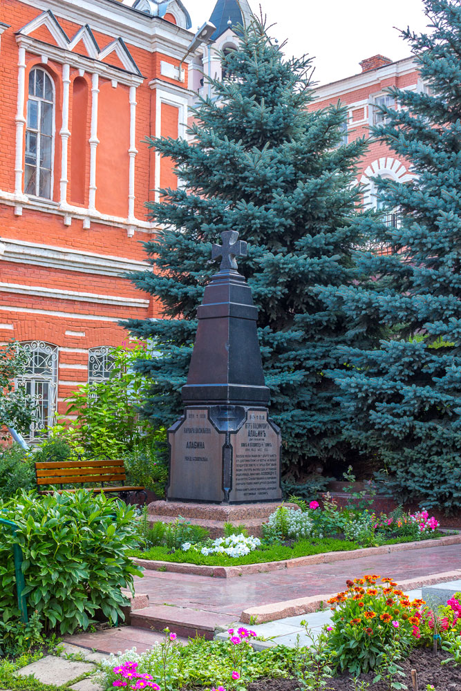 В прошлом на территории монастыря был обширный некрополь. До наших дней сохранился памятник П.В. Алабину – действительному статскому советнику, воину и летописцу четырех войн. Петр Владимирович был умным, образованным и талантливым человеком, любящим Родину, именно он возглавил делегацию для доставки Самарского знамени в Болгарию. Семейство Алабиных было постоянным и крупным благотворителем монастыря. В 1874 году супруги Алабины устроили придельный храм во имя равноапостольной царицы Елены и великомученицы Варвары над склепом с могилой дочери Елены, с южной стороны Иверского храма. Позднее на этом месте были похоронены Петр Васильевич с женой, его сын и дочь.