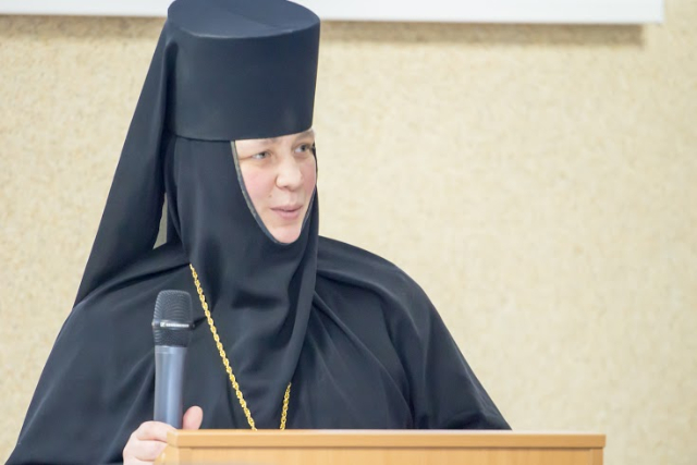Доклад «Преемство древних монашеских традиций в женском монашестве на Руси» игумении монастыря Рождества Богородицы (Ростов Великий) Афанасии (Силкиной), несмотря на скромно заявленную автором попытку «отметить лишь основные тенденции и особенности развития женских обителей и монашества в России», оставил впечатление очень серьезного, глубоко продуманного труда. Экскурсы в далекую историю (начиная с женских монастырей в Египетской пустыне и в первые века существования их на Руси) сопровождались жизнеописаниями выдающихся монахинь-подвижниц, историческими сведениями о создании и особенностях внутренней уставной жизни обителей. Подробно были рассмотрены причины роста или оскудения женских монастырей в разные исторические эпохи, социальный состав монашествующих женщин, характер несения послушаний. Автору удалось достичь главного: на обширном материале показать вклад русского женского монашества в развитие аскетической традиции.