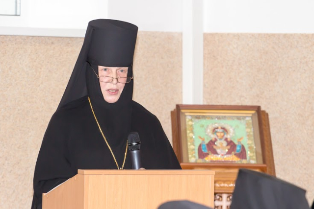 Доклад игумении Викторины (Перминовой), настоятельницы московского Богородице-Рождественского ставропигиального монастыря, в самом названии содержал некое полемическое зерно: «Богослужение в монастырях: для братии или для паломников?»  Игумения монастыря, стоящего в самом центре мегаполиса, вероятно, как никто иной, чувствует актуальность данного вопроса. Матушка Викторина с большой мудростью, с опорой на непреходящие основы, данные святыми отцами, предложила взглянуть на эту проблему. Можно – утверждает она – смиренно принять неизбежное в такой ситуации сближение монастыря и мира и не поступиться при этом внутренней духовной жизнью, духовным ростом, которые зиждутся на молитве, во много раз превосходящей силы большинства простых паломников, желающих посещать монастырские богослужения.