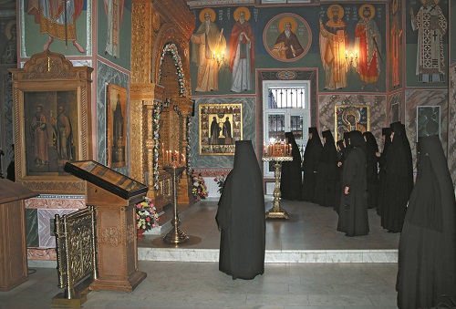 День в обители начинается в 05.30. В 06.00 в храме совершается общемонастырское молитвенное правило, в 07.30 – часы и Литургия. На Литургии присутствуют все сестры, не занятые на послушаниях. Далее следуют первая трапеза, общие послушания, затем вторая трапеза, и в 17.00 начинается вечернее богослужение, которое посещают все свободные сестры.