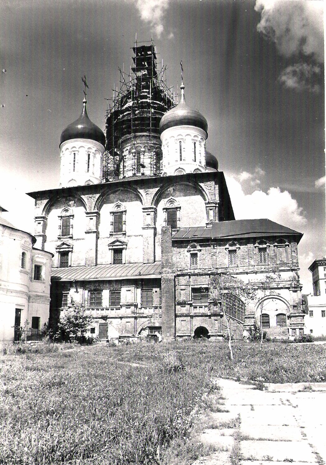 В шестидесятые годы в монастыре начались реставрационные работы. Жителей стали постепенно переселять, выселили и скульптурный комбинат. Всю территорию передали реставраторам. Из Преображенского собора вывезли архив, но здание, не переданное реставраторам, осталось без хозяина. Протекала крыша, ветшали стены. Окончательно разграбили усыпальницу, находившуюся под собором.