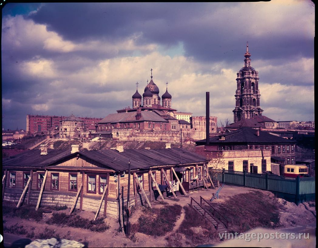 Начался следующий этап разорения святыни. Освободившиеся помещения пустовали недолго. Территорию передали в ведение хозяйственного управления НКВД. Началось бурное заселение бывшего монастыря. В это время, видимо, значительно увеличилась численность московской милиции, и срочно требовалось жилье. Заселили все помещения, которые недавно освободились от заключенных. Кроме милиционеров и их семей, жилье отводилось обслуживающему персоналу и рабочим хозяйственного управления городской милиции. Кроме того, было устроено несколько общежитий в бывших церквях. Даже проход под колокольней был превращен в двухэтажное общежитие. Непонятно, как получали прописку в то строгое время, но селились буквально везде. На колокольне под арками, предназначенными для помещения колоколов, построили две хибары – жили! Даже кур завели. Жили в крепостных башнях, и даже в часовне у собора жила целая семья из четырех человек.