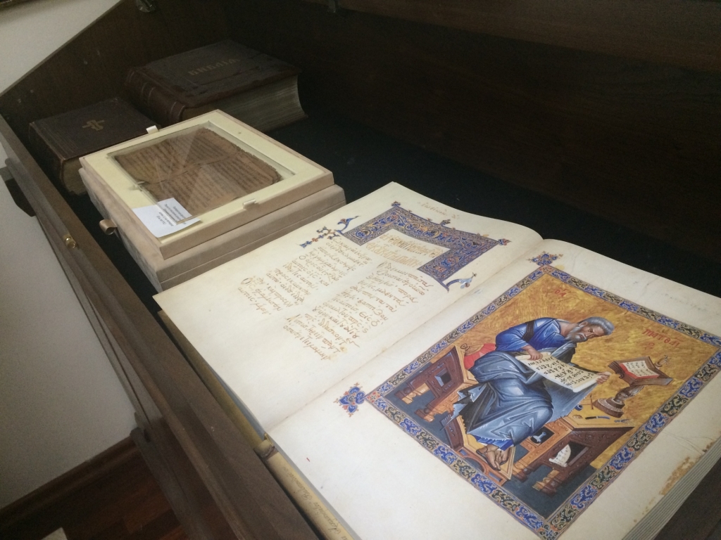 По стенам аудитории «Языки» — копии древних манускриптов: Евангелие на древнегреческом, письмена на латинском и старославянском, арабская вязь. Каждый добросовестный семинарист, выбравший тот или иной язык, обязательно разберется в них.