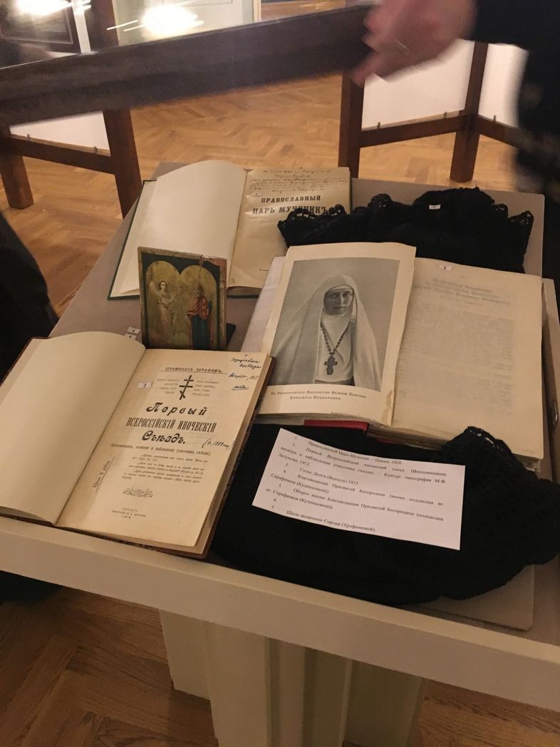 А за полтора года до этого – тоже событие огромной важности! – отец Серафим участвует в работе Первого Всероссийского иноческого съезда в Троице-Сергиевой лавре с правом совещательного голоса и ведет подробный дневник дебатов. Спустя некоторое время, его заметки в газете «Русская земля» и в журнале «Монастырь» составят основу подготовленной им книги об историческом съезде, являя на сегодняшний день единственное сохранившиеся целостное повествование о работе форума. Это издание – «Первый Всероссийский иноческий съезд. (Воспоминания, записки и наблюдения участника съезда)» – можно было увидеть на тематической выставке в Историко-культурном центре «Соборная палата» ПСТГУ, подготовленной Т.А. Романовой вместе с послушницей Ксенией Хайнбюхер. На 24 баннерах были представлены разные этапы жизненного пути старца-молитвенника. И за стеклом в двух витринах находились бесценные исторические книги, часть которых – из личного архива послушницы Ксении.
