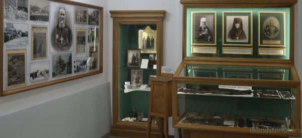 Что касается реликвий, то их приносили в монастырь и раньше. Например, в середине 90-х годов прошлого века, на заре возрождения обители,  кто-то (сестры теперь жалеют, что не записали, кто именно) принес портрет святого праведного Иоанна с дарственной надписью: «Игумении Санкт-Петербургского Иоанновского монастыря Ангелине в день Ангела 8 ноября 1904 года. Протоиерей Иоанн Сергиев». А уже в нашем веке, в самом его начале, монастырю был подарен другой портрет, тоже принадлежавший матушке Ангелине, и тоже  – с дарственной надписью: «Петроградскому Иоанновскому монастырю. Игумении Ангелине на молитвенную память. Макарий, митрополит Московский и Коломенский». Широко известен случай: святитель Макарий (Невский),  крупный миссионер, «апостол Алтая», получил исцеление по молитвам святого праведного Иоанна Кронштадтского, с которым его связывали тесные духовные узы. Владыка, страдавший от болезни кожи около шести лет, детально описал, как сухая экзема,  превратившись в мокрую, переходила с одной части тела на другую и особенно беспокоила его ночью: нужно было вставать, снимать бинты, старую мазь стирать, смывать, новую намазывать на больные места и опять бинтовать. 20 декабря (в день кончины отца Иоанна) 1913 года он был приглашен в Иоанновский монастырь служить литургию в усыпальнице, где погребен святочтимый пастырь и молитвенник. После обедни отслужил панихиду у гробницы почившего и попросил исцеления. И, по его признанию, с того же дня началось его освобождение от мучительного недуга. «Тогда мне понятно стало, что со мной совершилось чудо милости Божией по молитвам того, кто еще при жизни прославился как чудотворец», – написал Святитель. Сейчас эти портреты с дарственными надписями можно увидеть в открывшейся экспозиции. Третий портрет на витрине  – портрет первой игумении обители.