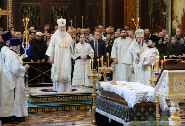 Отпевание почившего в Храме Христа Спасителя совершил Святейший Патриарх Московский и всея Руси Кирилл. На протяжении многих лет их с Валентином Григорьевичем связывали добрые, тёплые отношения.