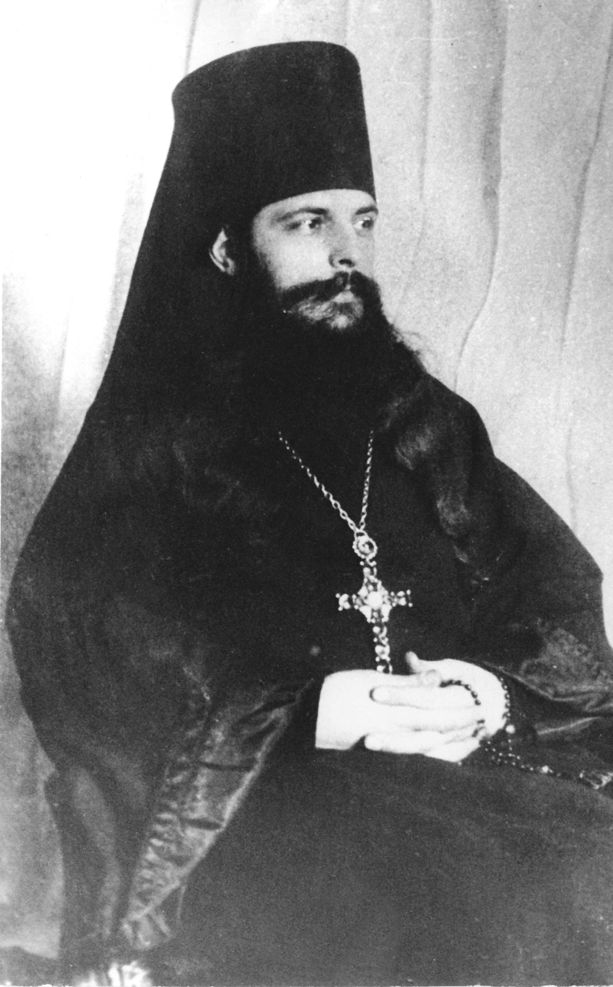 «Как-то раз я пришла к владыке утром с обоими детьми. Он молча взял Алешу за руку и повел к себе в молельню, поставил перед иконами и начал облачать в полное монашеское одеяние. Дал в руки крест и зажженную свечу. Все это он делал с необыкновенно торжественным видом, соблюдая полное молчание. Алеша, в то время семилетний ребенок, стоял очень смирно. Присутствовали при этом только я и Серафим. Детям казалось, что Владыка шутит с ними. Серафим попросил: ”И меня”. Владыка ответил: ”А тебя – нет”. Я же почувствовала во всем этом, конечно, не шутку, а глубокое предсказание. На глазах у меня были слезы, которые я скрыть не могла.