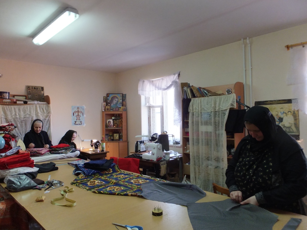 В зимнее время способные к различным рукоделиям сестры занимаются поделками: шьют мешочки для просфор, лепят из глины, расписывают игрушки. Все изделия поступают в монастырскую церковную лавку.