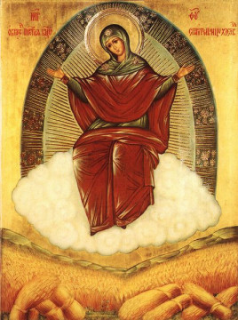В 1890 году, за год до кончины преподобного Амвросия, настоятельница Болховского Всесвятского монастыря игумения Илария прислала ему икону, на которой Божия Матерь была изображена сидящей на облаках, Ее руки подняты в благословляющем движении; внизу сжатое поле, среди цветов и травы – снопы ржи. Изображение Богородицы было заимствовано с иконы Всех святых главного храма Болховского монастыря, а поле со снопами написано по благословению старца. Он назвал икону «Спорительница хлебов», показав, что Матерь Божия помогает не только в духовных нуждах, но и в земных трудах. Старец очень любил этот образ и заповедал молиться перед ним всем своим духовным чадам. Для акафиста иконе он сам написал припев: «Радуйся, Благодатная, Господь с Тобою! Подаждь и нам, недостойным, росу благодати Твоея и яви милосердие Твое». Первым чудом по молитве перед иконой стал прекрасный урожай на шамординских полях и в Калужской губернии в голодный для всей России 1891 год.